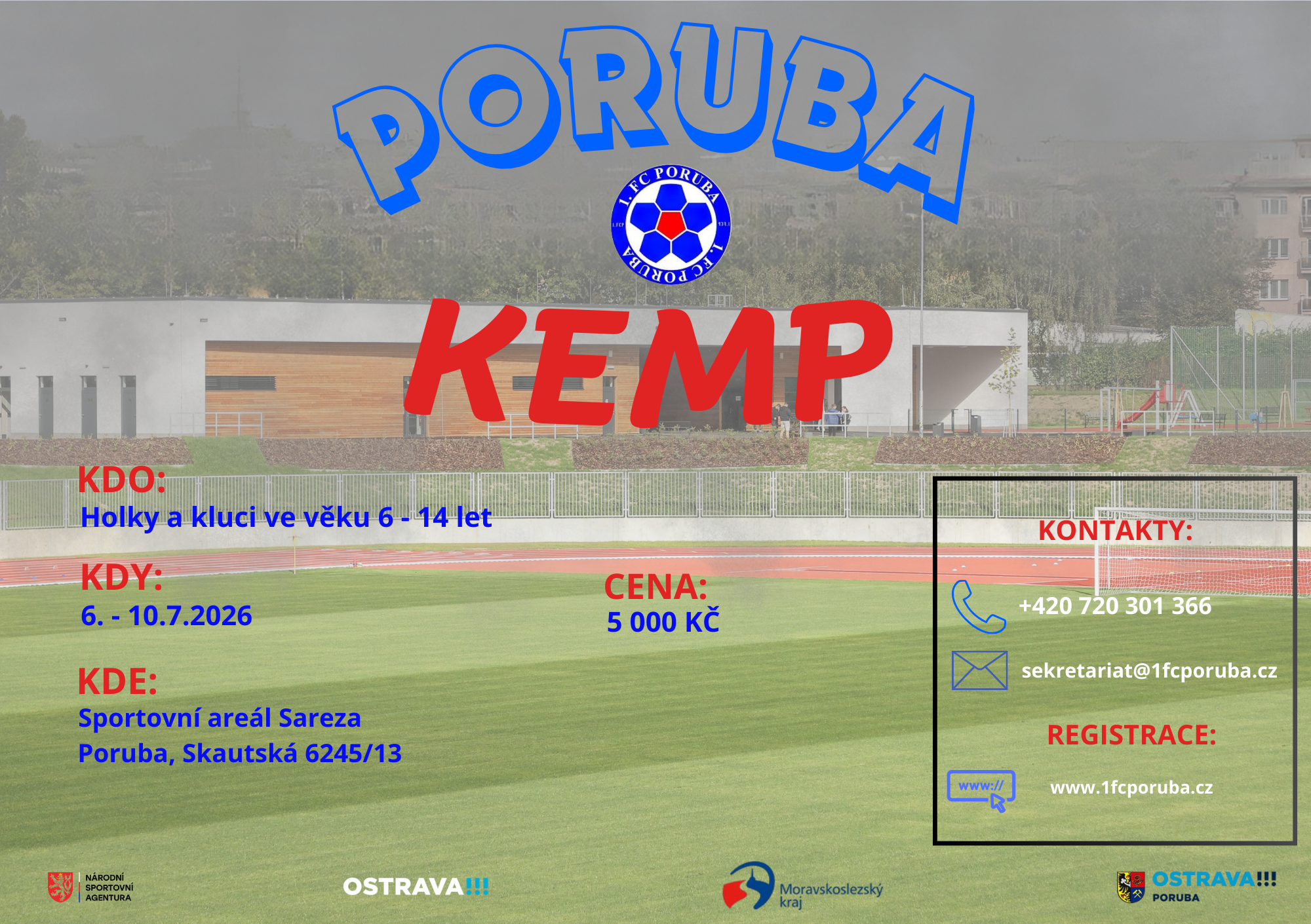 Zveme Vás na první ročník našeho příměstského fotbalového kempu, který ponese název PORUBA KEMP                        Kemp bude nejen o sportovním zážitku, ale také zažijete spoustu srandy a poznáte nové kamarády.